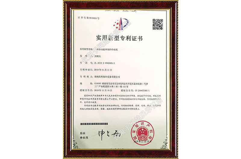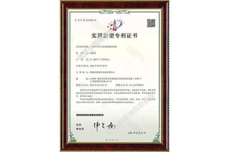 灵活性高且只有会瘦余热功能的制冷系统实用新型专利证书