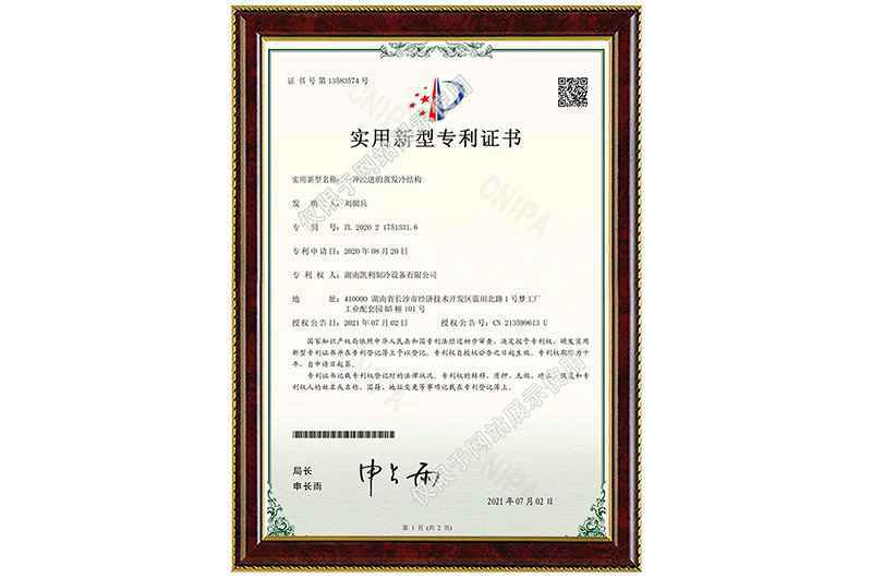 用于并联的螺杆压缩冷凝剂组的板式换热器专利证书